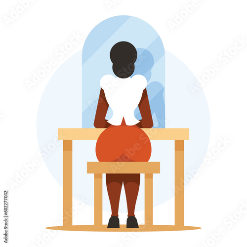 Папа проводит время с маленьким мальчиком-сыном, сидя на скамейке в парке, вид сзади. Векторная иллюстрация счастливых родителей и детей. Концепция дня отцов и приятной беседы