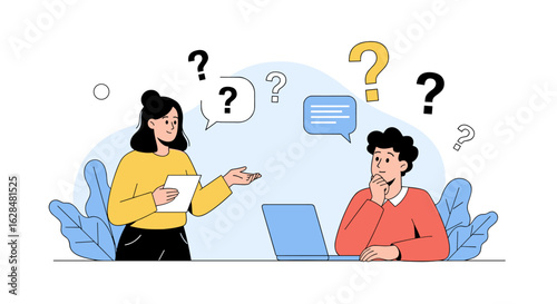 Женщина-художник, переживающая творческий кризис или блок, плоская векторная иллюстрация. Чистый холст или лист бумаги для рисования на мольберте. Творческий кризис, беспокойство, усталость, головная боль, стресс, депрессия.