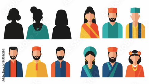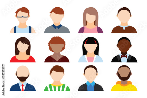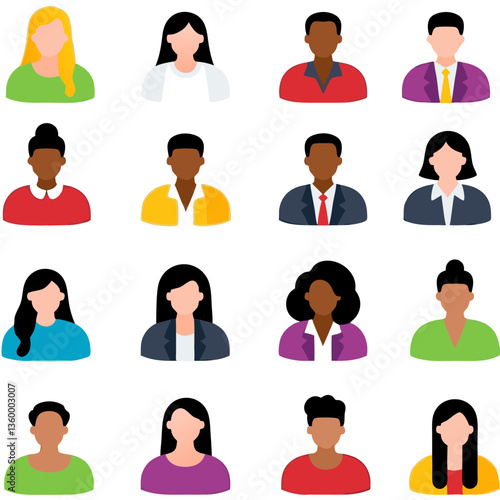 Набор векторных иконок женского аватара. Персонажи людей в плоском стиле. Элементы дизайна, изолированные на заднем плане. Лица разных стилей и национальностей.