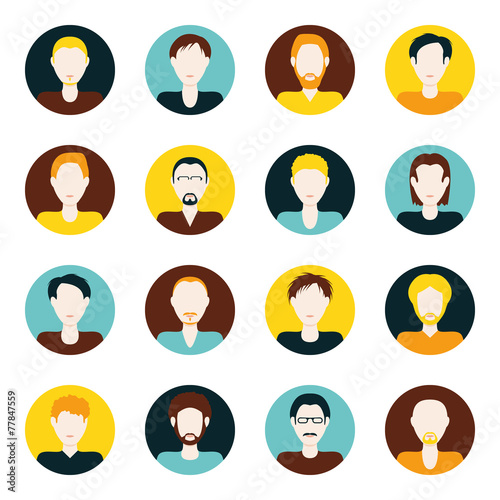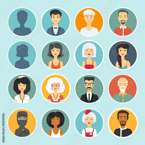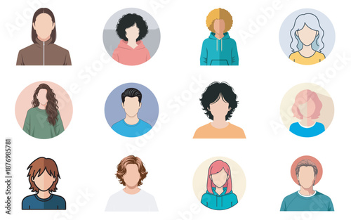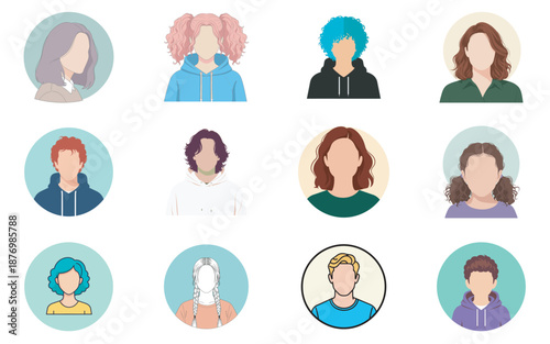 Набор векторных иконок женского аватара. Персонажи людей в плоском стиле. Элементы дизайна, изолированные на заднем плане. Лица разных стилей и национальностей.