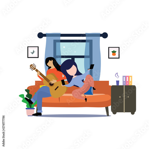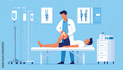 Женщина-врач делает УЗИ брюшной полости пациентке, лежащей на медицинской кровати, плоская векторная иллюстрация. Ультразвуковое медицинское обследование. Гастроэнтерология. Медицина и здравоохранение.
