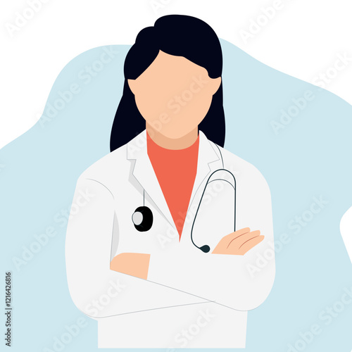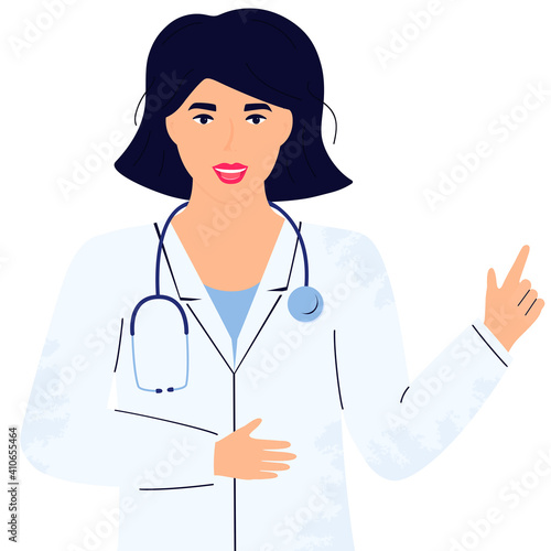 Женщина-врач терпеливо слушает векторную иконку, изолированную на белом фоне