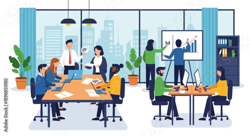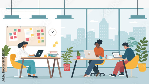 Только для женщин коворкинг офисное пространство, концепция векторной иллюстрации. Гендерное разнообразие бизнеса. Женщина работает на современном офисном рабочем месте.