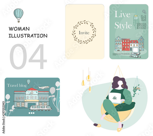 Женщина-фотограф делает снимок на природе. Иллюстрация концепции наблюдения за птицами. Фотография птицы. Векторный шаблон дизайна веб-сайта. Иллюстрация сайта целевой страницы.