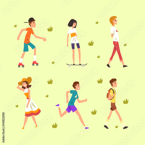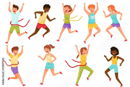 Набор векторных символов изолированных теннисисток. Фигурки девушек-игроков с ракеткой и мячом на теннисном корте.