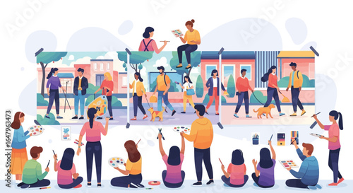 Вектор съемочной группы фильма. Съемка кинофильма в студии иллюстрации. Видео о предыстории создания Римской империи. Создание исторического телешоу на театральной сцене в центре внимания. Концепция кинематографа