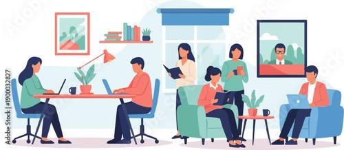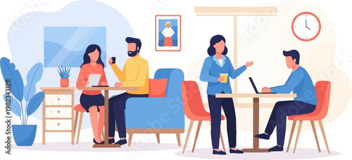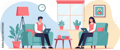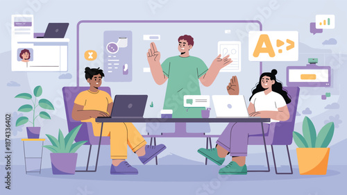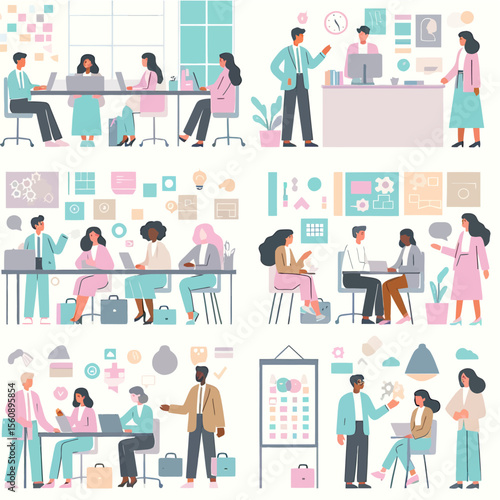 Уволенный сотрудник покидает офис, роботы-машины, работающие на компьютерах, плоская векторная иллюстрация. Превосходство искусственного интеллекта. Автоматизация. Сокращение человеческого персонала.