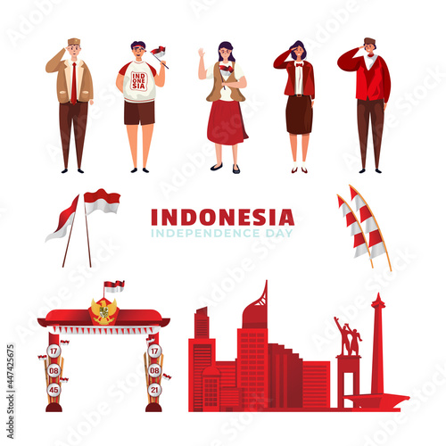 Пожарный в защитном снаряжении, пожарная машина, принадлежности для пожаротушения и горящий лес, красный силуэт дома, выделенный на белом фоне. Векторная иллюстрация профессии спасателя