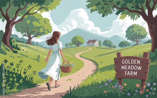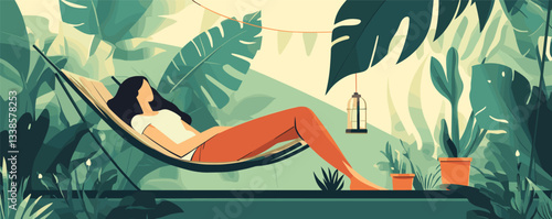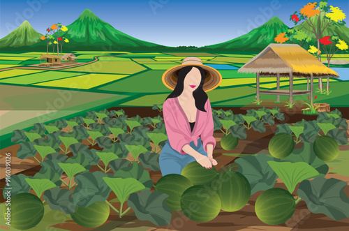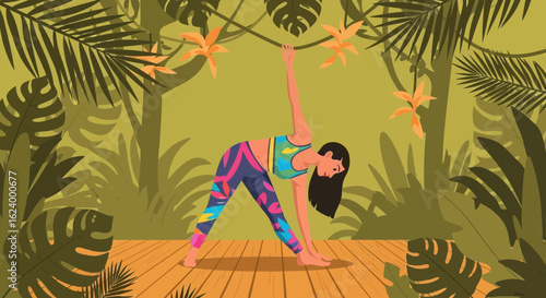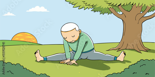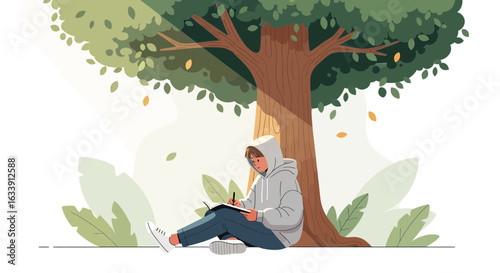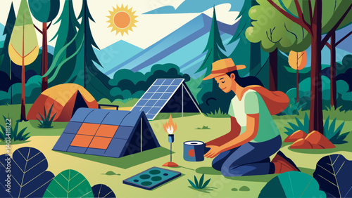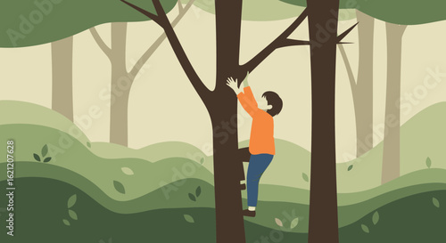 Персонаж пожарного в защитной одежде и шлеме с водяным шлангом тушит лес в векторной сцене пожара. Иллюстрация опасной вспышки лесного пожара и мер по устранению последствий