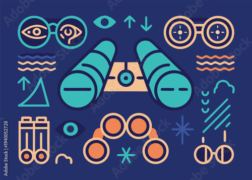 Иллюстрация дизайна векторного плоского стиля рыбалки. Удочка, гарпун, маска, стул, рыба, омар. Оборудование и принадлежности для ловли рыбы и раков для веб-баннера, страницы веб-сайта и т.д.