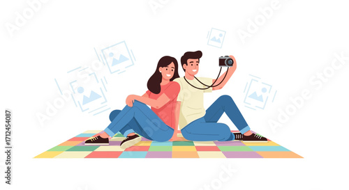 Рыбаки с удочкой, клеткой и поплавком в рыбацкой лодке, векторная иллюстрация. Рыболовное хобби, спорт, бизнес, концепция рыбной промышленности для веб-баннера, страницы веб-сайта и т.д.