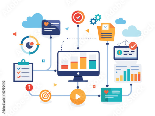 Набор векторных иллюстраций концепции фитнеса, изолированных на белом фоне. Умная тренировка с мобильным приложением fitness tracker и умными часами с пульсометром, счетчиком шагов. Спортивная носимая технология.