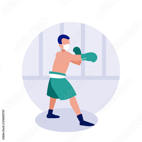 Человек, бьющий по тяжелой груше, векторная плоская иллюстрация, изолированная на белом фоне. Тренировки по боксу, тренировки в тренажерном зале, боевые искусства, занятия спортом.