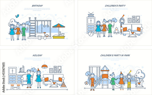 Векторная иллюстрация интерьера фитнес-центра. Люди тренируются в тренажерном зале с горизонтальными баннерами. Концепция спортивных мероприятий.