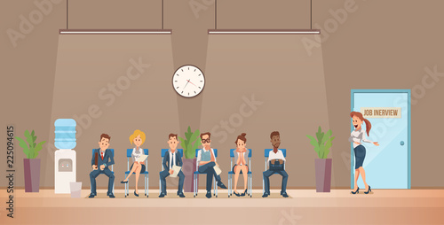 Векторная иллюстрация интерьера фитнес-центра. Люди тренируются в тренажерном зале с горизонтальными баннерами. Концепция спортивных мероприятий.