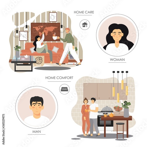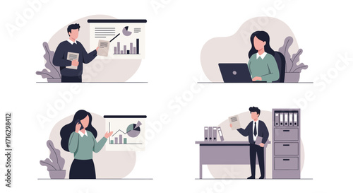 Люди тренируются с личными инструкторами, векторная плоская иллюстрация. Фитнес-женщина тренируется с гантелями, мужчина делает жим лежа, поднимая штангу. Фитнес-зал, тренировки, спорт и здоровый образ жизни.