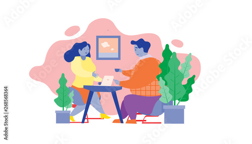 Огромная бутылка шейкера в тренажерном зале, яблоко, фитнес-люди, микро-мужские и женские персонажи, тренирующиеся с гантелями и штангой, векторная плоская иллюстрация. Силовые тренировки, фитнес-зал, бодибилдинг, спортивный клуб.