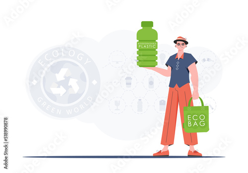Огромная бутылка шейкера в тренажерном зале, яблоко, фитнес-люди, микро-мужские и женские персонажи, тренирующиеся с гантелями и штангой, векторная плоская иллюстрация. Силовые тренировки, фитнес-зал, бодибилдинг, спортивный клуб.