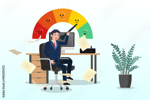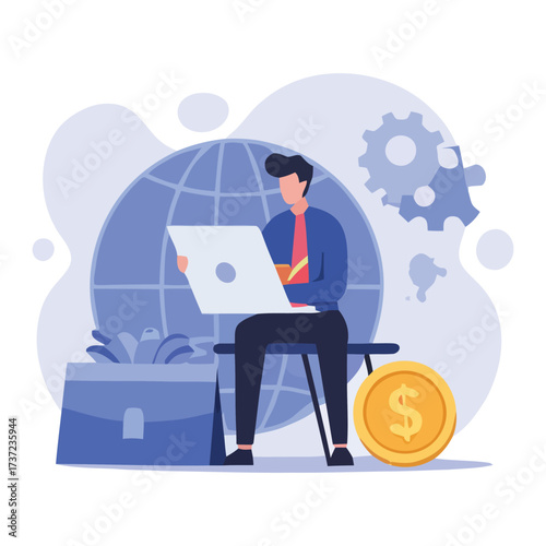 Фитнес-зал. Молодой человек-бодибилдер делает упражнения для рук, чтобы нарастить мышцы и силу, плоская векторная иллюстрация. Тренировка трицепсов с гантелями. Спорт и здоровый образ жизни.