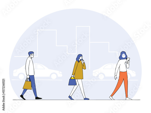 Векторная плоская иллюстрация большого смартфона с приложением для отслеживания фитнес-активности и крошечными персонажами, молодой парой, бегущей трусцой. Концепция фитнес-трекера и запущенного приложения для мобильного телефона для веб-баннера и т.д.