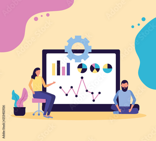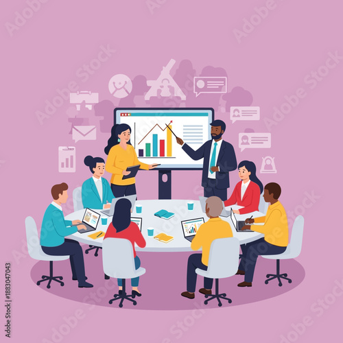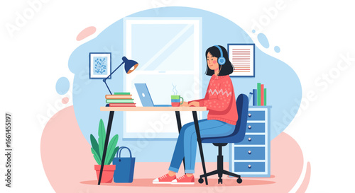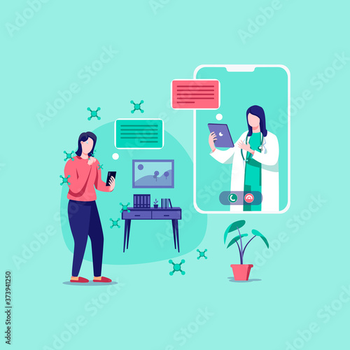 Молодая девушка занимается спортом дома вместе с онлайн-тренером, векторная плоская иллюстрация. Домашние тренировки, онлайн-тренировки по фитнесу, спорт и здоровый образ жизни.