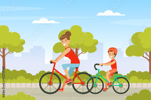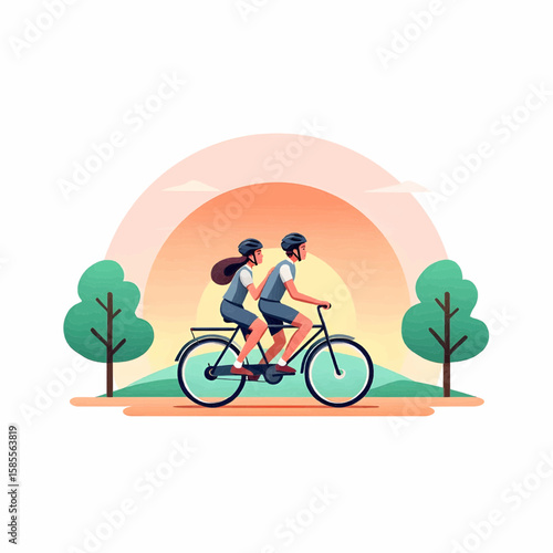 Векторная иллюстрация женщины-курьера, доставляющей букет цветов на велосипеде. Элемент дизайна в плоском стиле курьера по доставке цветов.