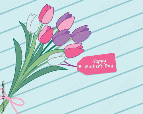 Векторная иконка вазы для цветов. Цветочный букет из тюльпанов, выделенный на белом фоне