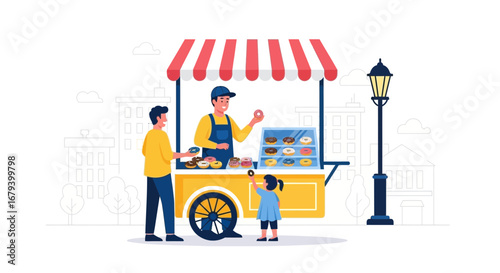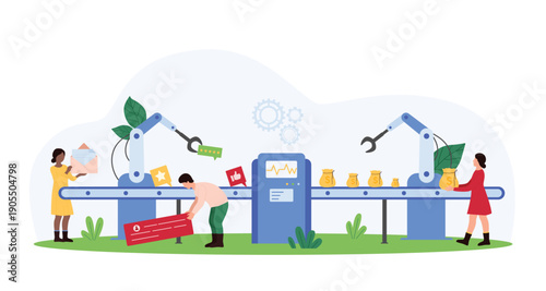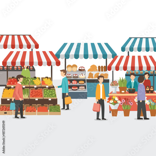 Концепция цветочного магазина векторная иллюстрация. Женщина-флорист делает букет цветов для клиента. Женщина покупает комнатные растения в цветочном магазине.
