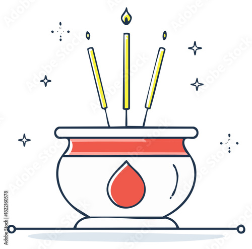 Значок фондю. Векторная миска с подогревом в горшочке с растопленным шоколадом и клубникой на вилке для макания, выделенная на белом фоне