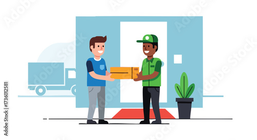 Векторная иллюстрация курьера с красной сумкой для доставки. Концепция доставки на дом. Элемент дизайна в плоском стиле Food people, значок, выделенный на белом фоне.