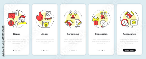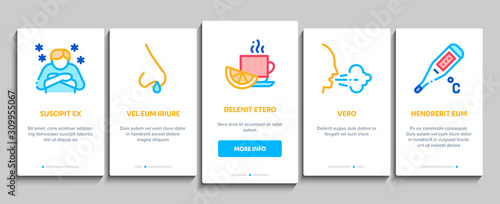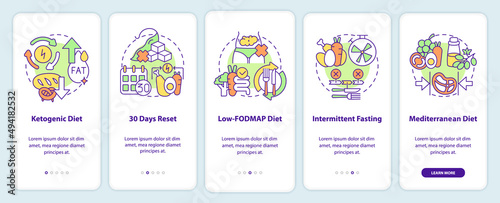 Набор шаблонов страницы мобильного приложения для обеспечения безопасности пищевых продуктов. Векторная иллюстрация приложения для охлаждения, разделения, очистки и приготовления пищи на экране телефона. Концепция профилактики заболеваний пищевого происхождения