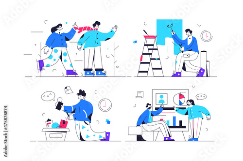 Футбольные фанаты в масках для лица смотрят футбольный матч, сохраняя социальную дистанцию друг от друга на стадионе, плоская векторная иллюстрация. Новая норма после пандемии COVID-19. Спортивные мероприятия, футбольный матч.