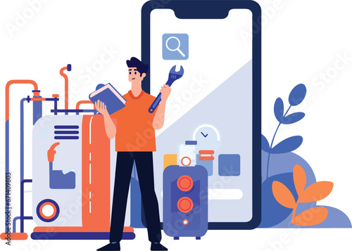 Счастливые персонажи мужского пола, два друга смотрят футбол или футбольный матч по телевизору в гостиной дома, векторная иллюстрация дизайна в плоском стиле. Футбольные фанаты, прямая трансляция футбола по телевизору.