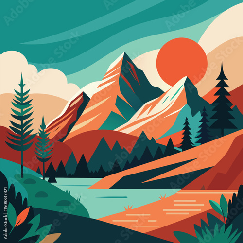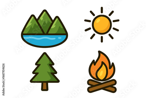 Вектор стихийного бедствия, вызванного лесным пожаром. Значок лесного пожара. Изолированная сцена с дикими деревьями и пламенем. Ландшафтная иллюстрация лесного пожара природного апокалипсиса на белом фоне
