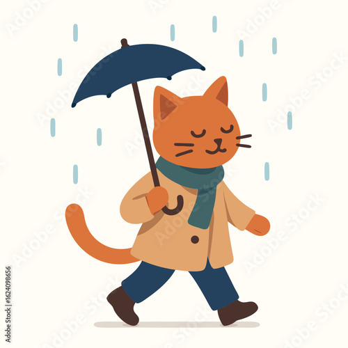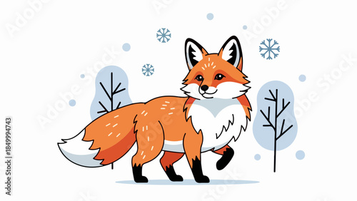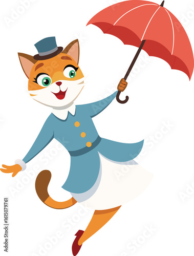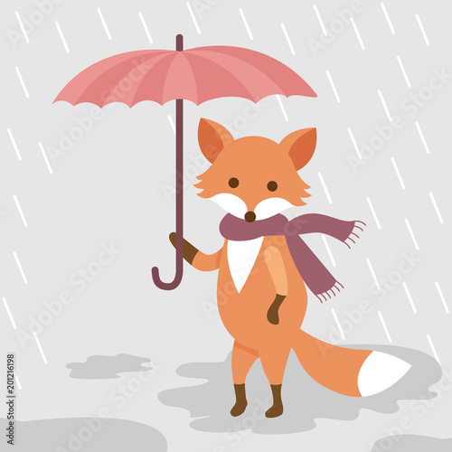 Милая векторная лиса, летящая на зонтике. Иллюстрация счастливого дикого красного животного. Забавный мультяшный осенний персонаж, плоский значок, изолированный на белом фоне