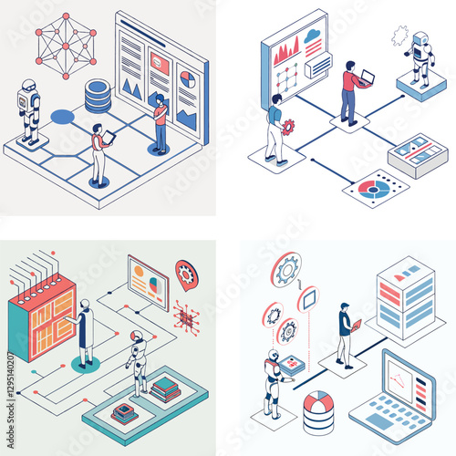 Изометрическая блок-схема франчайзингового бизнеса, плоская векторная иллюстрация. Развитие сети магазинов, розничной сети, филиальной сети, франчайзинг.