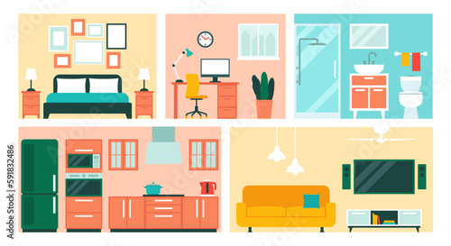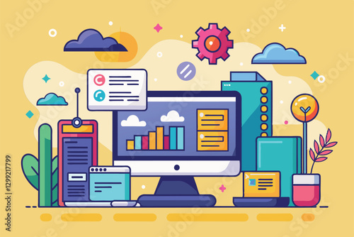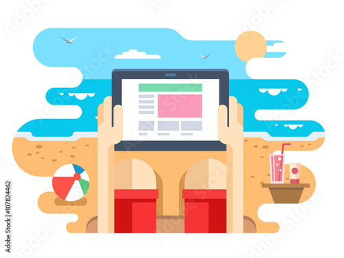 Фриланс во время летних каникул, набор шаблонов векторных плакатов. Рабочее место на летнем тропическом пляже, люди отдыхают, работают и наслаждаются пляжными развлечениями. Работайте удаленно и путешествуйте по миру.