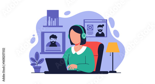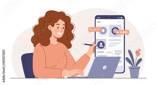 Внештатный. Молодой человек, работающий дома, лежа на кровати, плоская векторная иллюстрация. Персонаж мужского пола-фрилансер, работающий на портативном компьютере в спальне. Удаленная работа, дистанционное образование, онлайн-обучение.