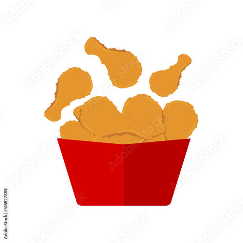 Векторный значок упаковки фаст-фуда с жареными куриными ножками, изолированный на белом фоне