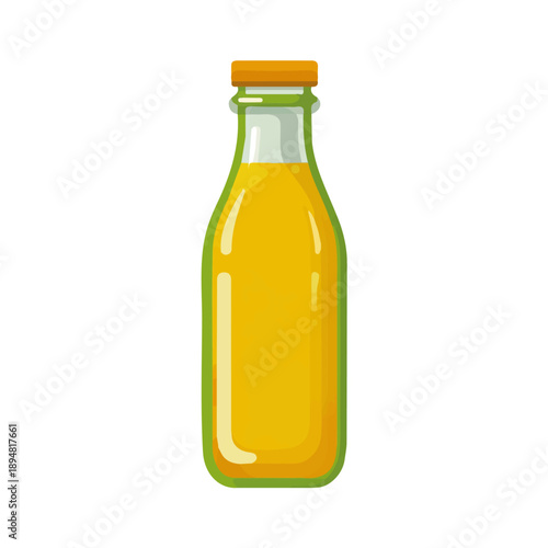 Векторная иконка бутылки с соком или молоком. Стеклянная или прозрачная пластиковая банка для напитков с макетом крышки, выделенным на белом фоне