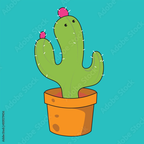 Кактус в векторе. Забавный талисман для одурачивания суккулентных растений с иллюстрацией из мультфильма "Розовый цветок". Симпатичное лицо кактуса с позитивной улыбкой танцует в цветочном горшке, изолированном на белом фоне