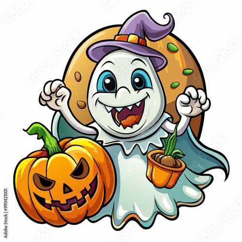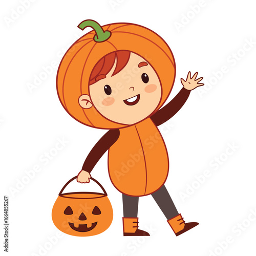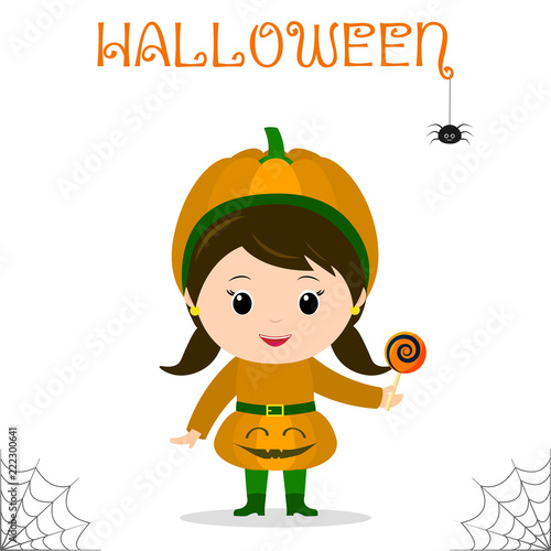 Забавный мультяшный персонаж-девушка-ведьма, держащая жуткую резную тыкву перед векторной иллюстрацией лица. Трюк или угощение, концепция празднования праздничной вечеринки на Хэллоуин