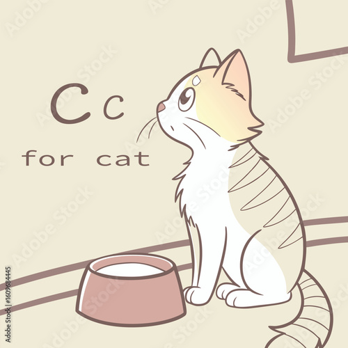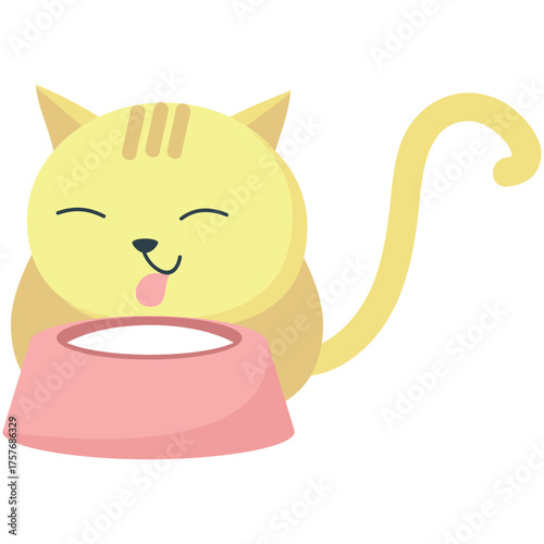 Векторная иконка мультяшного кота, пьющего молоко из миски. Изолированная иллюстрация поедания милым котенком домашних животных на белом фоне