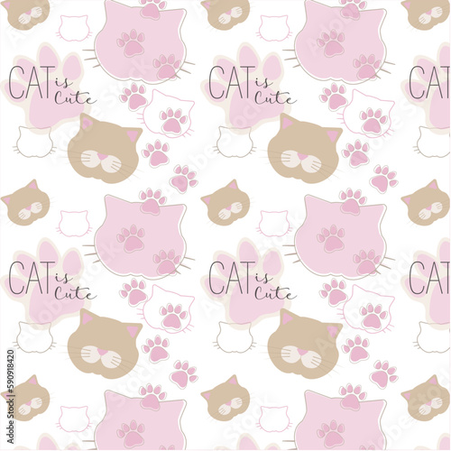 Забавные кошки векторный бесшовный узор. Креативный дизайн с облизывающимися, поедающими кошками для ткани, текстиля, обоев, оберточной бумаги.