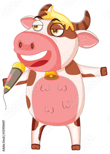 Забавный улыбающийся талисман коровы, держащий стакан свежего молока, плоская мультяшная векторная иллюстрация. Милый очаровательный значок персонажа фермерского животного, изолированный на белом фоне