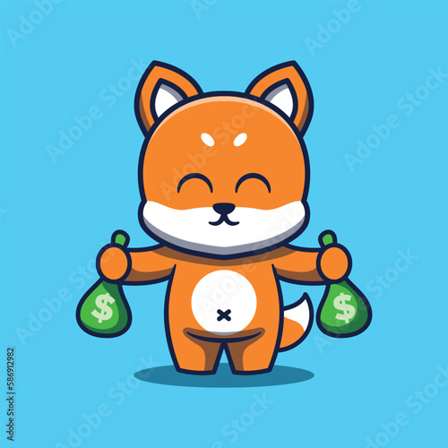 Забавный вектор лисы. Значок из мультфильма "Милое лесное животное". Комический лесной персонаж с красным хвостом в наушниках, слушающий музыку и танцующий на белом фоне.