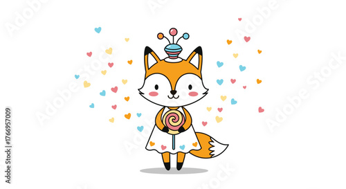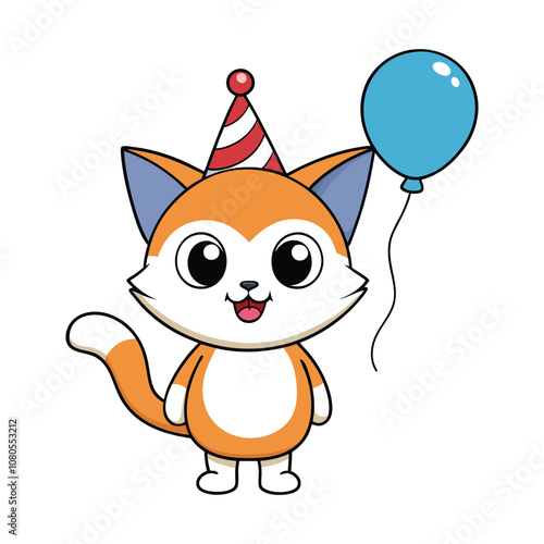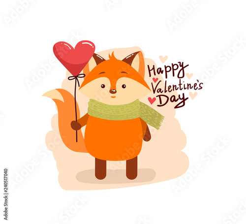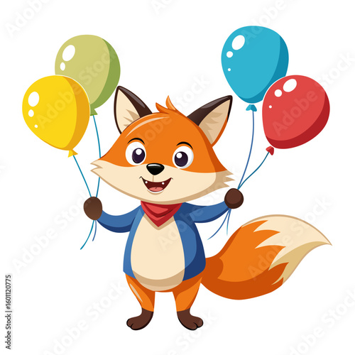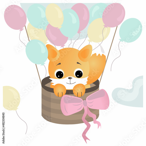Забавный вектор лисы. Значок из мультфильма "Милое лесное животное". Комический лесной персонаж с красным хвостом, летящий на воздушном шаре, изолированный на белом фоне