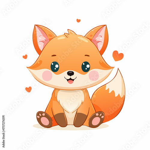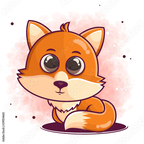 Забавный вектор лисы. Значок милого лесного животного из мультфильма. Комический лесной персонаж с красным хвостом, пахнущий диким цветком, выделенный на белом фоне