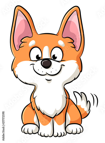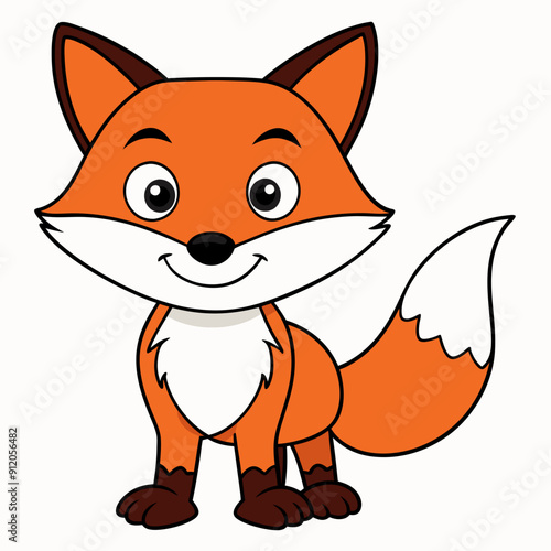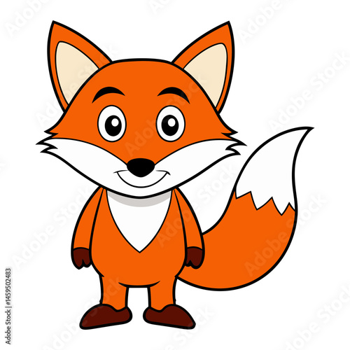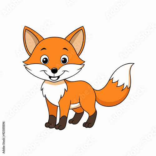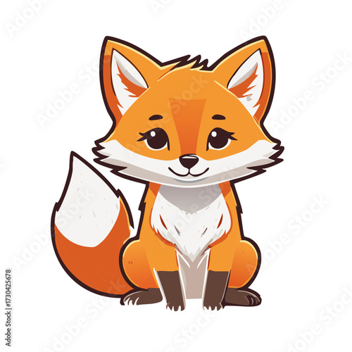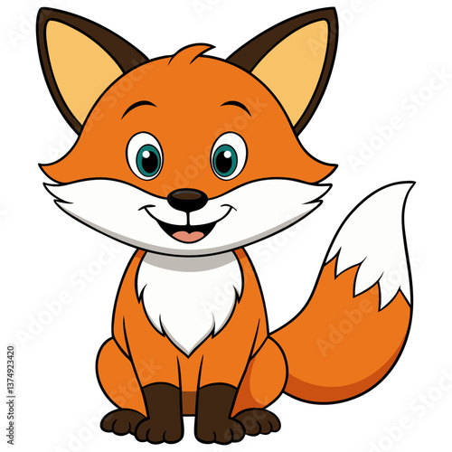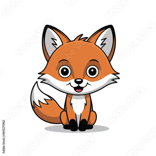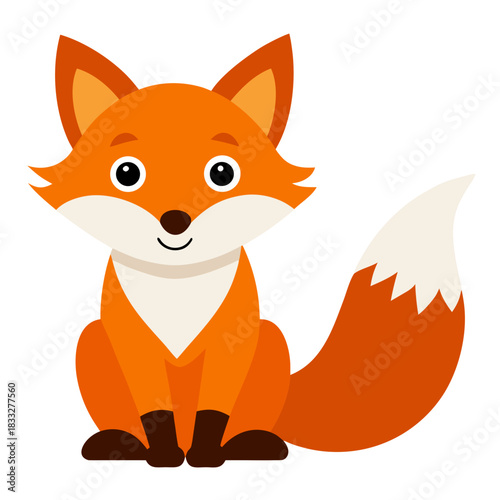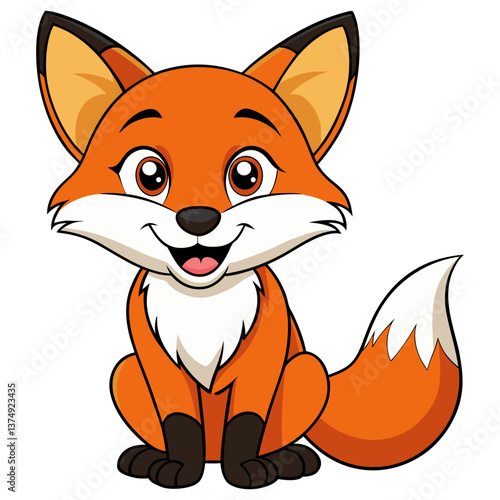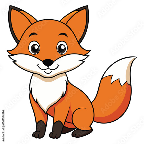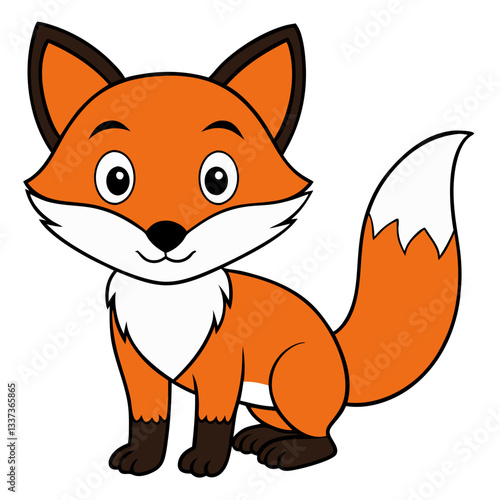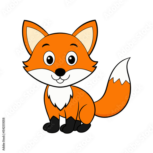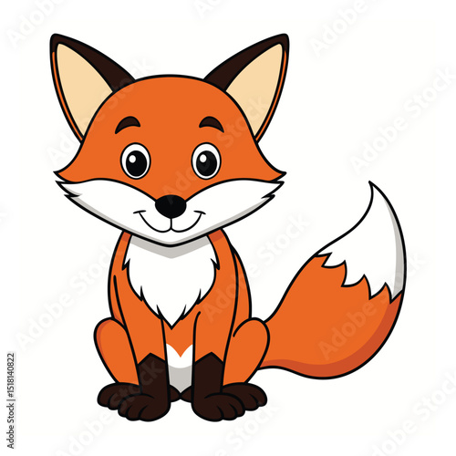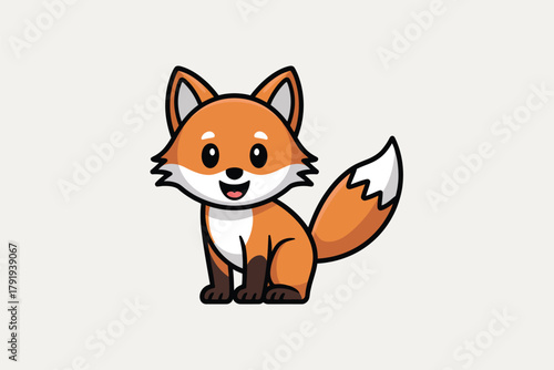 Забавный векторный рисунок лисы. Значок милого лесного животного из мультфильма. Комический лесной персонаж с красным хвостом, сидящий изолированно на белом фоне