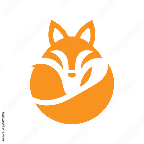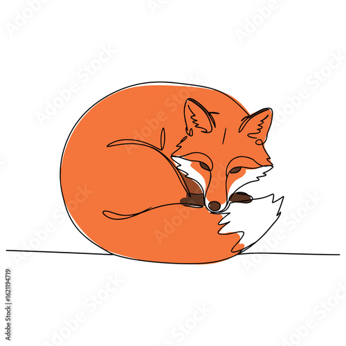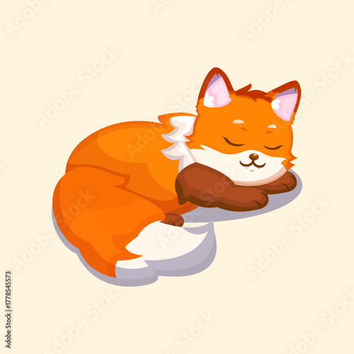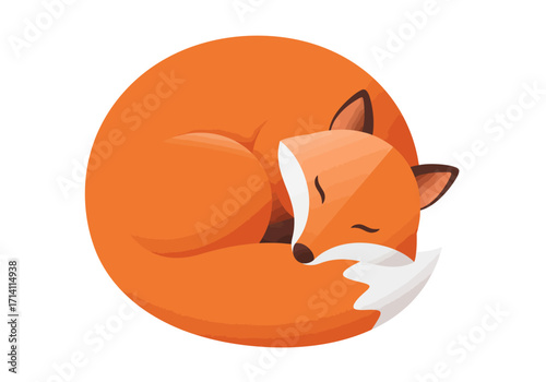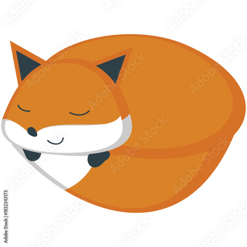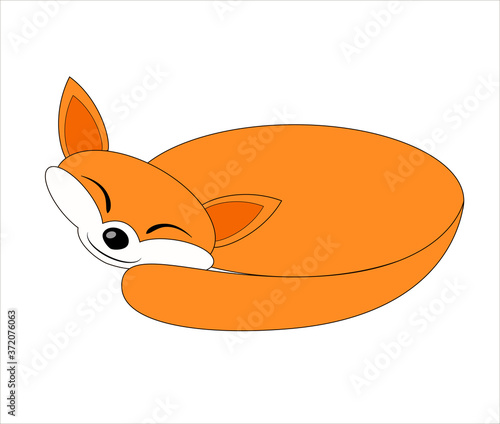 Забавный вектор лисы. Значок мультфильма "Милое лесное животное отдыхает". Комический лесной персонаж с красным хвостом, свернувшийся калачиком и спящий изолированно на белом фоне